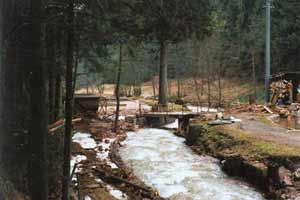 Sand und Steine wurden in die Fischweier geschwemmt und der Zufahrtsweg war weggespühtl, als das Hochwasser im Februar 1990 das Tal erfasste. Später wurde der Weg höher verlegt.