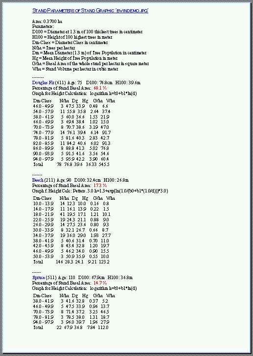 visualisation (bwindemo.jpg) of stand parameters (bwintxt.jpg,