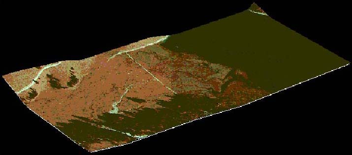 impression of the landscape. Overlaying anaglyphs with other ArcInfo coverages