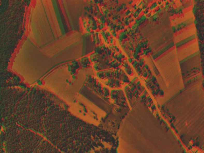 the blue/red respectively the blue/green channel of a pair of overlapping